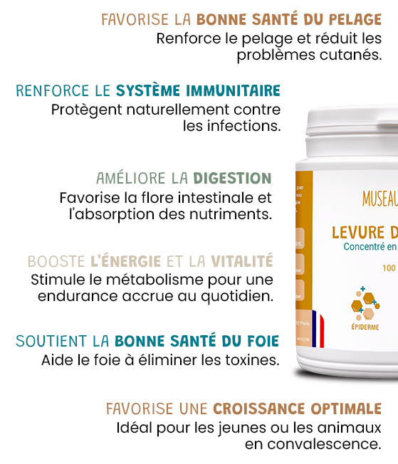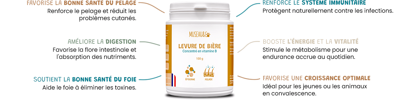Riche en vitamines B, elle favorise la brillance du pelage et améliore la santé de la peau.