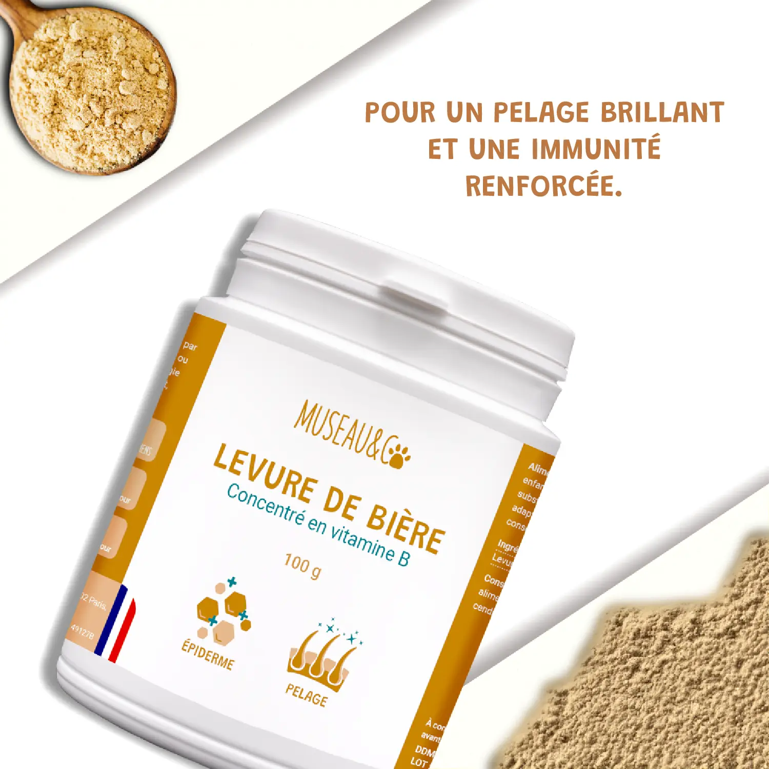🥄 Facile à utiliser, la Levure de Bière Museau & Co se mélange simplement à la nourriture quotidienne. Un geste simple pour un poil brillant, une peau saine et une meilleure vitalité au naturel.