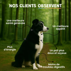 Ces retours mettent en avant une meilleure énergie au quotidien, une diminution des démangeaisons, et surtout, un chien plus à l’aise et plus heureux au quotidien. 🐾