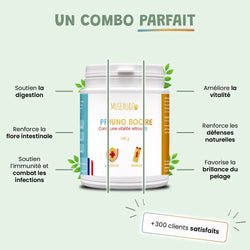 Grâce à sa combinaison de probiotiques et prébiotiques, ce complément aide à renforcer naturellement le système immunitaire de votre toutou.