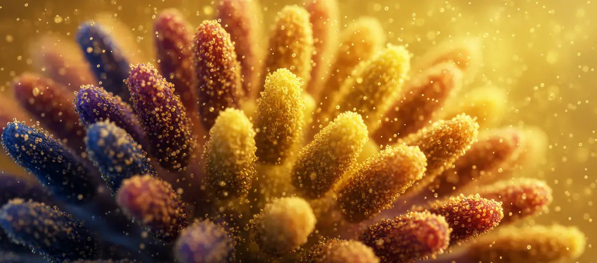 🌸 Pollen : source de vitamines et d’acides aminés essentiels, il aide à stimuler l’énergie et la vitalité.