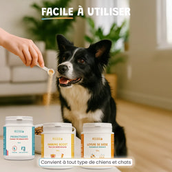 Une utilisation régulière favorise un pelage brillant et doux, une peau saine, et contribue à une digestion équilibrée pour un animal en pleine forme.