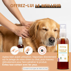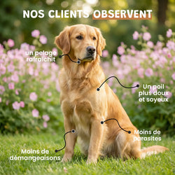Je le recommande pour purifier le pelage, favoriser une peau saine et protéger efficacement les chiens lors des sorties en extérieur."
