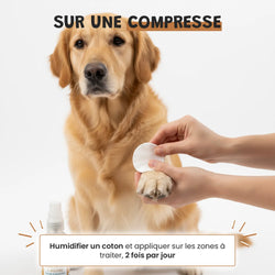 Il suffit de vaporiser directement sur le pelage ou d’appliquer avec une compresse, puis de laisser agir sans rinçage.
