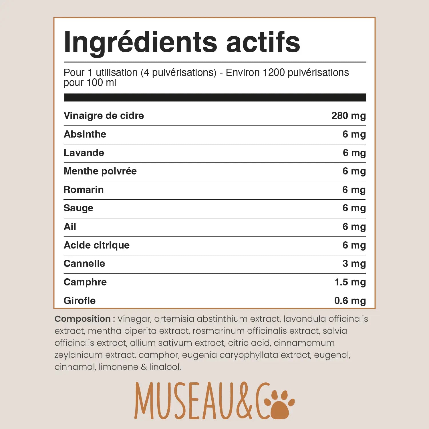Le Vinaigre des 4 voleurs est un véritable bouclier naturel pour les toutous aventuriers. Grâce à la présence de plantes aromatiques aux propriétés répulsives comme la lavande, le romarin ou la menthe, il aide à éloigner les puces, tiques et moustiques sans agresser la peau.