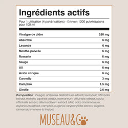 Recette ancestrale à base de plantes macérées dans du vinaigre, le Vinaigre des 4 voleurs aide à purifier la peau, protéger le pelage et repousser les parasites tout en douceur.